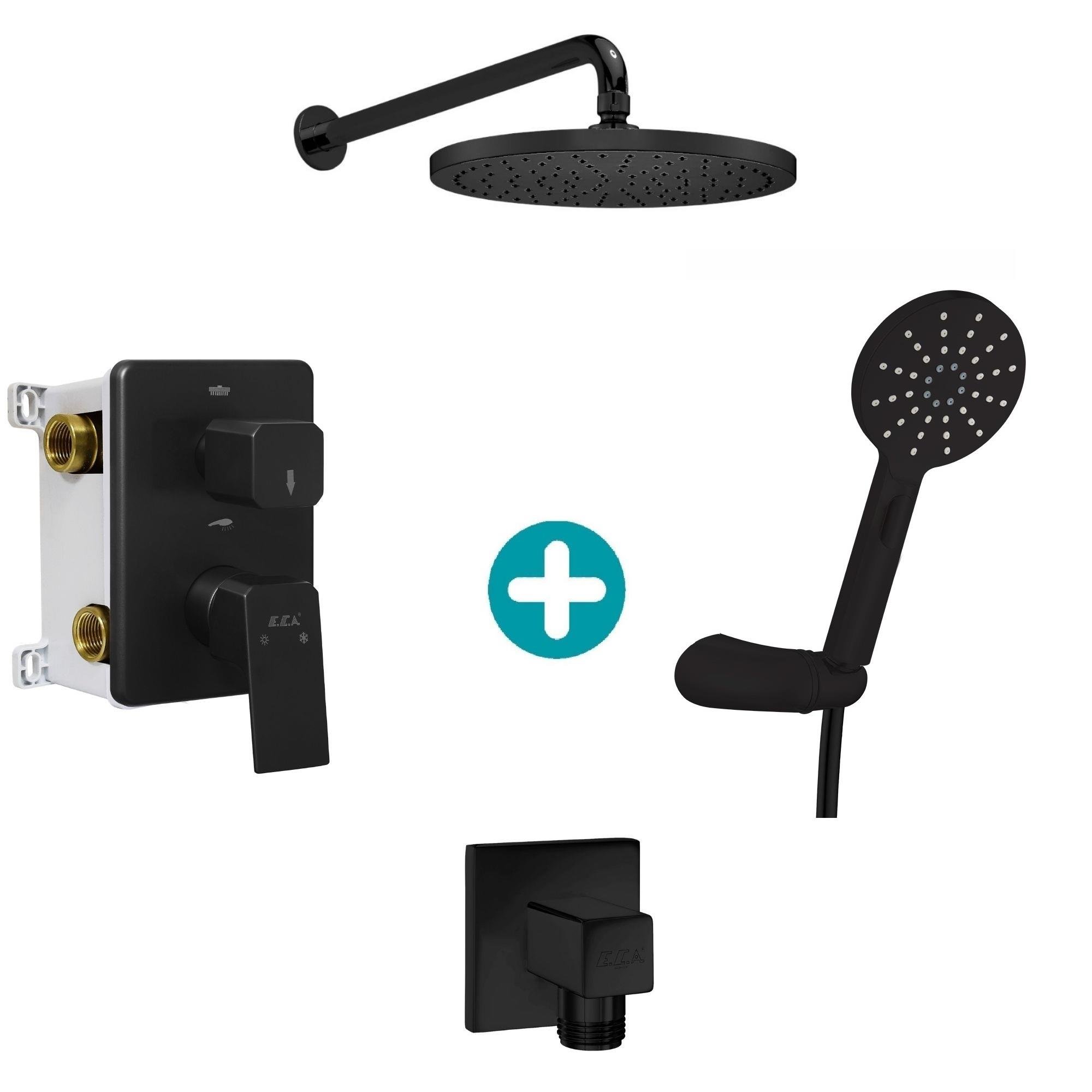 ECA Royal Ankastre Gömme Banyo Bataryası Mat Siyah Duş Seti Tüm Parçalar Dahil