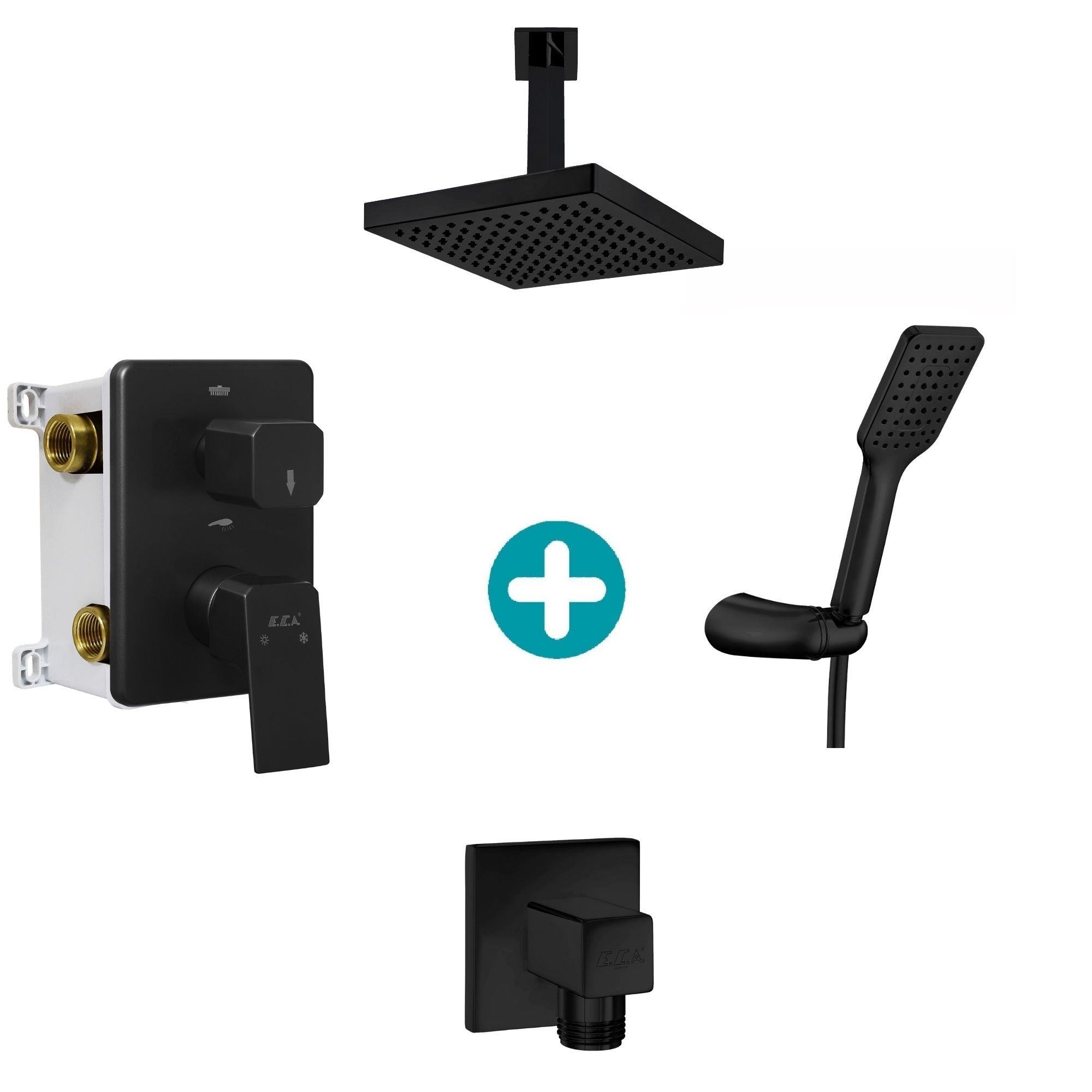 ECA Tiera Ankastre Gömme Banyo Bataryası Mat Siyah Duş Seti Tüm Parçalar Dahil